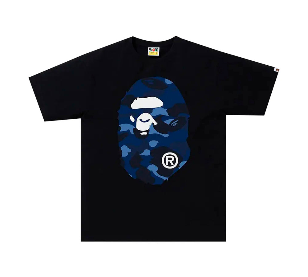 A BAPE Color Camo Big Ape Head T-shirt na cor Black/Navy é uma peça icónica que exemplifica o domínio da estética urbana e do design gráfico do streetwear japonês de luxo. Confeccionada em algodão premium de elevada densidade e durabilidade, esta t-shirt de corte clássico oferece um caimento estruturado e um conforto excecional para o uso diário. O detalhe de design mais importante é o imponente logótipo Big Ape Head estampado no peito, preenchido com o padrão Color Camo exclusivo em tons de azul-marinho (Navy), garantindo um look visualmente impactante, exclusivo e imediatamente reconhecível como um símbolo de prestígio da A Bathing Ape.