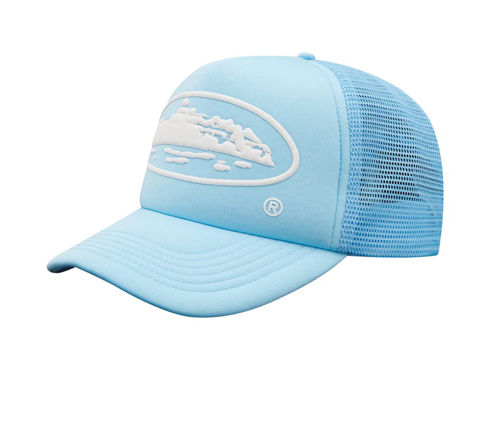 Com o print Alcatraz em puff sobre fundo azul claro, este trucker traz a rebeldia Corteiz num acessório leve e destacável. Estrutura clássica em rede e fecho snapback ajustável.