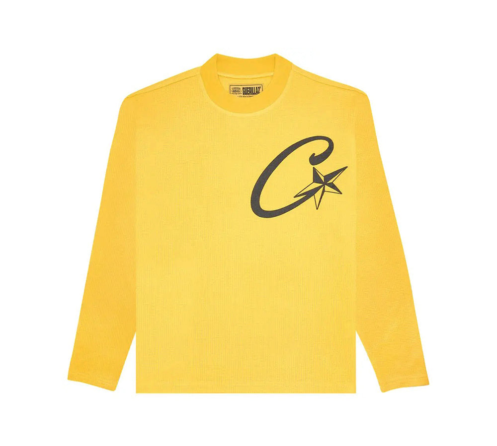 Em amarelo vibrante e malha waffle texturizada, esta longsleeve destaca o icónico “C Starz” no peito. Uma peça que mistura conforto térmico com statement gráfico, ideal para visuais de meia estação com ADN Corteiz.