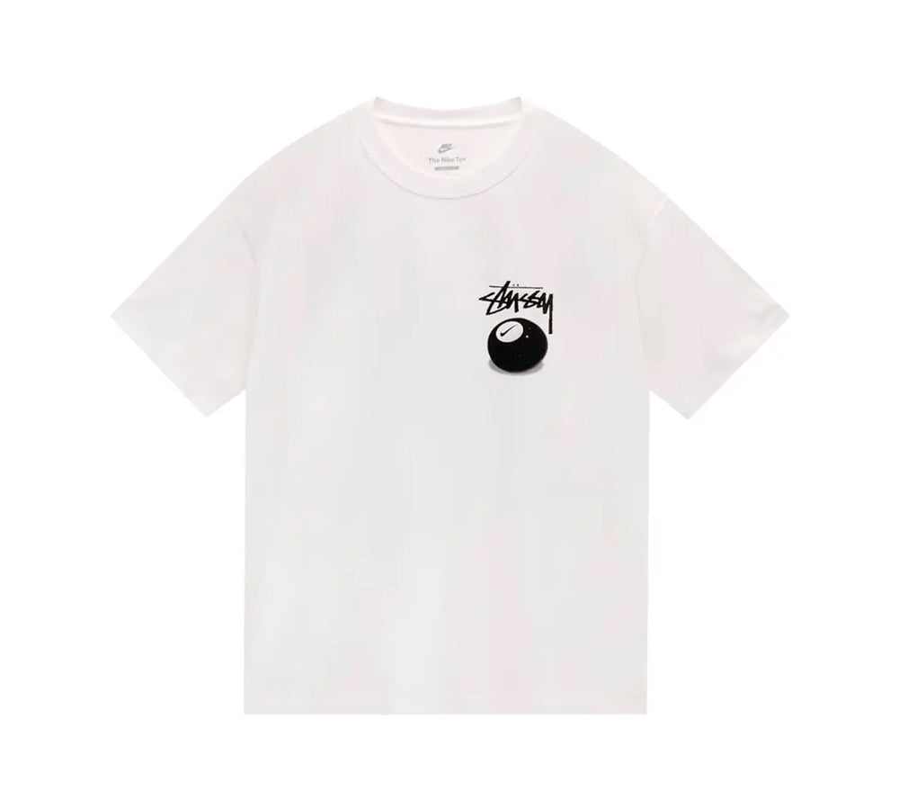 A Nike x Stussy 8 Ball T-shirt na cor Multi é uma peça de coleção que celebra a união entre a herança do desporto e a cultura streetwear californiana. Confeccionada em algodão de alta gramagem, esta t-shirt de corte oversized oferece uma estrutura relaxada e durável, típica das colaborações NRG da Nike. O detalhe de design mais importante é o grafismo vibrante e multicolorido da icónica "8 Ball" da Stüssy nas costas, fundindo-se com o logótipo Swoosh da Nike, o que garante um look nostálgico, artístico e de elevado estatuto dentro da moda urbana.