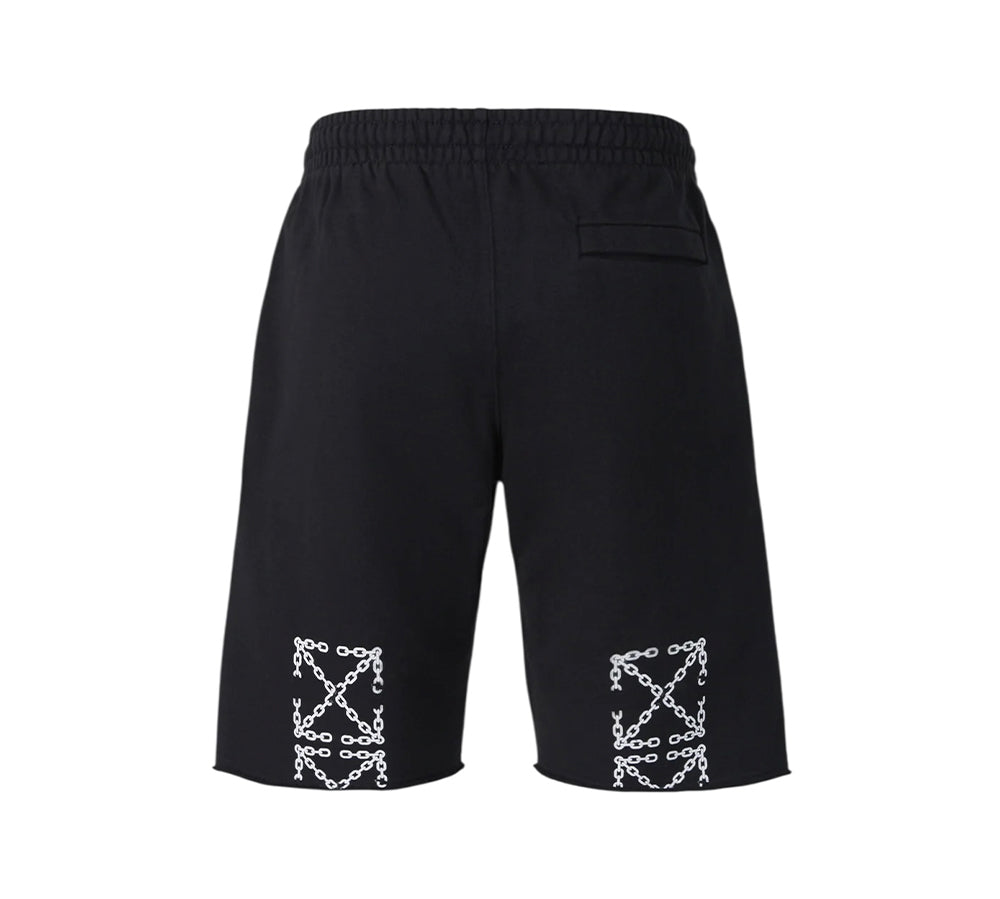 Com inspiração industrial e assinatura gráfica irreverente, estes bermuda shorts da Off-White destacam-se pelo print “Arrows Chain” nas costas — a clássica seta da marca reinterpretada com textura metálica e estética crua.