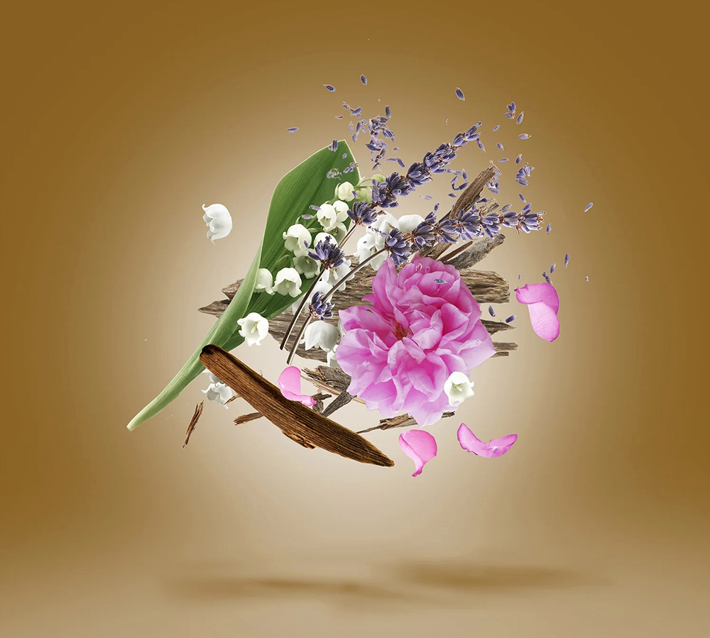 No coração, a composição torna-se classicamente oriental e floral. O Cedro e a Rosa Búlgara combinam-se para uma sensação amadeirada, rica e ligeiramente atalcada, suportada pelo Lírio-do-Vale, que confere um toque verde e transparente.