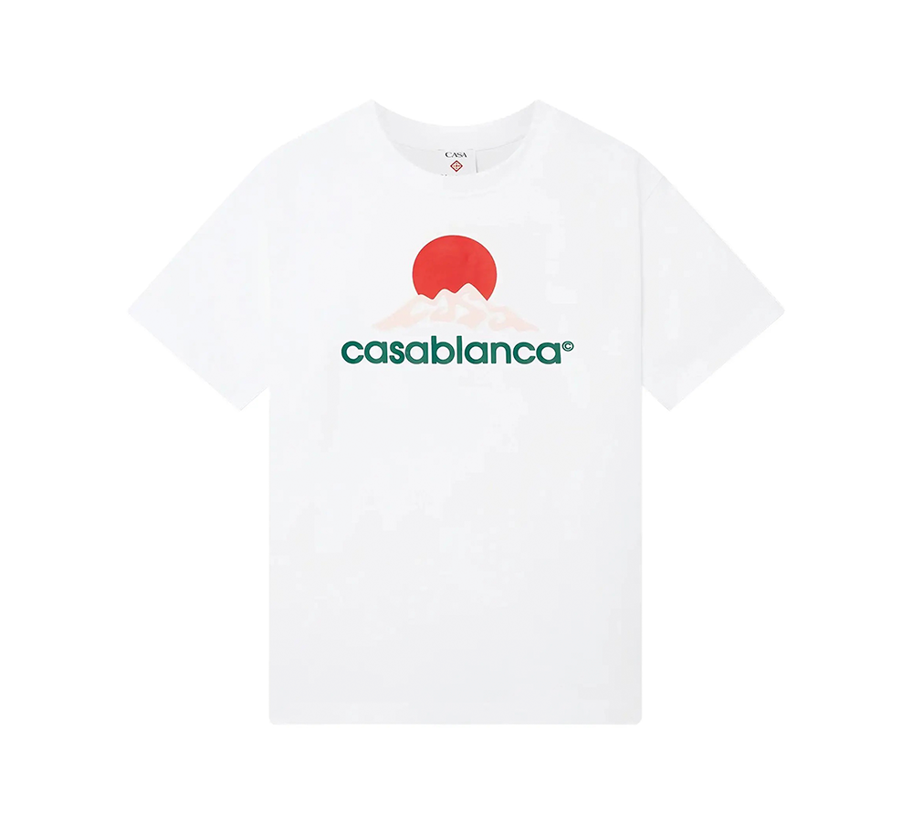 A t-shirt Casablanca Montagne Printed em branco é uma peça que conjuga arte, conforto e estilo nattural com a assinatura única da Casablanca. Fabricada em 100% algodão orgânico — jersey macio de peso intermédio — esta t-shirt oferece uma sensação suave ao toque e durabilidade para o uso diário.