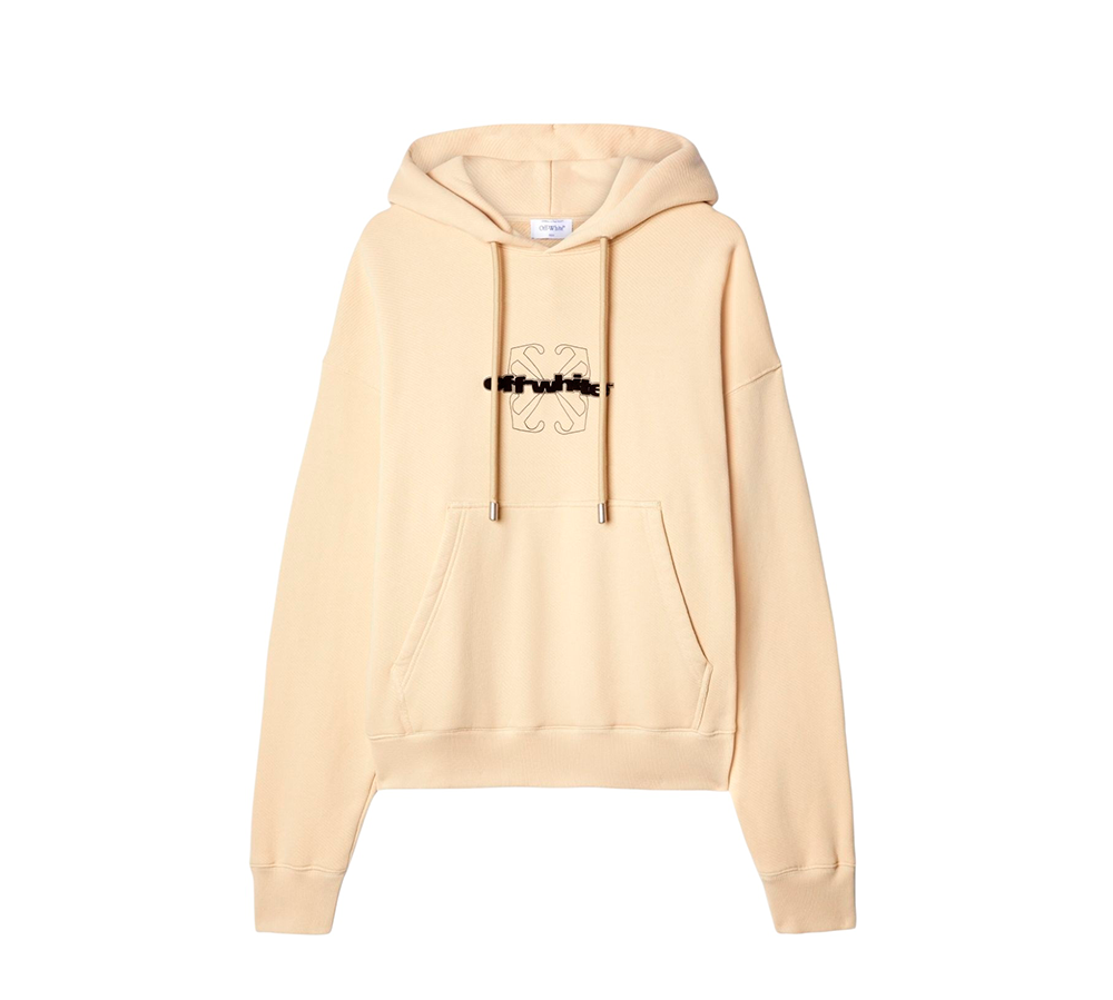 A Off-White flocked-logo Hoodie na cor Beige (Bege) é uma peça essencial que reflete a estética streetwear de luxo e o branding arrojado característicos da visão de Virgil Abloh. Confeccionada em algodão fleece (felpa) premium e macio, esta hoodie pullover de corte relaxed-fit ou oversized oferece um conforto superior e um caimento descontraído e contemporâneo. O detalhe de design mais importante é o logótipo "Off-White" em flock (um material aveludado ou texturado) de cor contrastante (geralmente branco ou preto), aplicado de forma proeminente no peito ou nas costas, adicionando uma dimensão tátil e um statement de branding imediato e elevado, que se integra perfeitamente no tom neutro e sofisticado do bege.