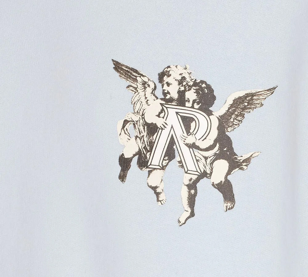 A Represent Cotton Legacy Cherub Hoodie na cor Baby Blue é uma peça de destaque no streetwear de luxo, combinando uma estética renascentista com a modernidade urbana britânica. Confeccionada em algodão de alta gramagem com um toque suave e estrutura robusta, esta hoodie apresenta o corte oversized característico da marca, oferecendo uma silhueta contemporânea e confortável. O detalhe de design mais importante é o grafismo artístico de querubins impresso com alta definição, acompanhado pelo logótipo da marca, que sobre o tom azul claro vibrante cria um visual sofisticado, expressivo e de grande impacto visual.