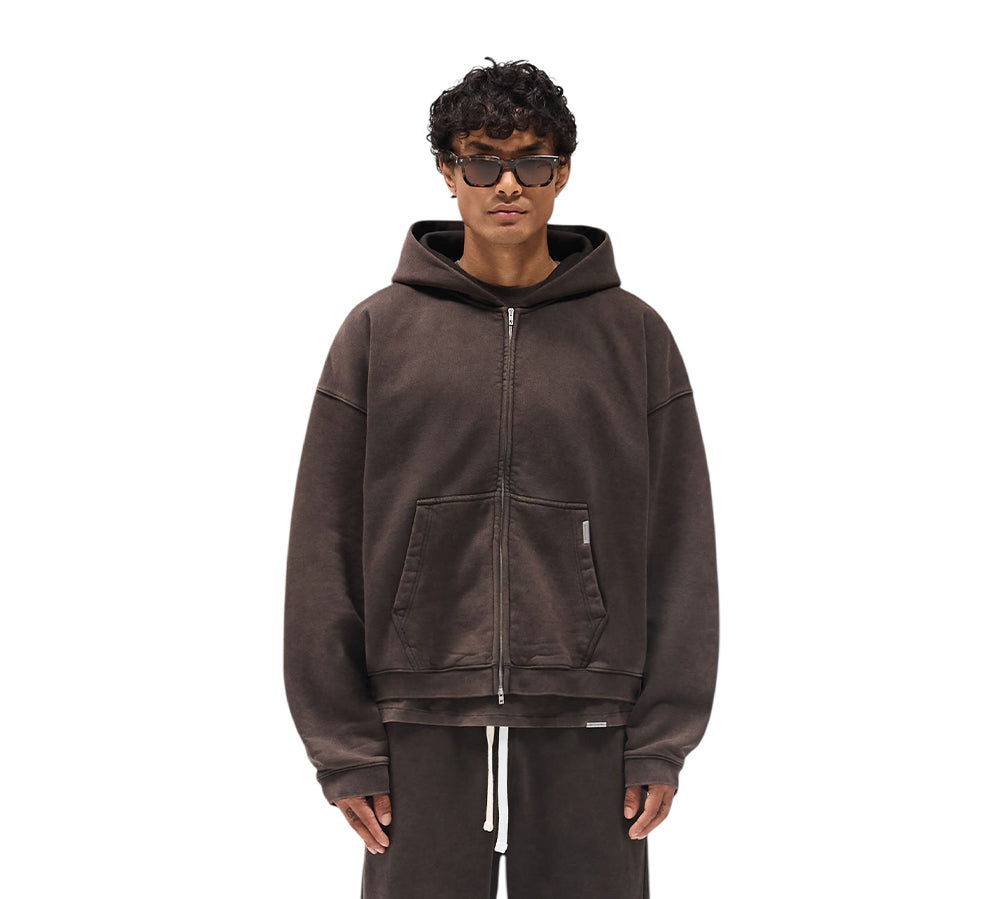 Represent Initial Boxy Zip Through Hoodie - Coffee