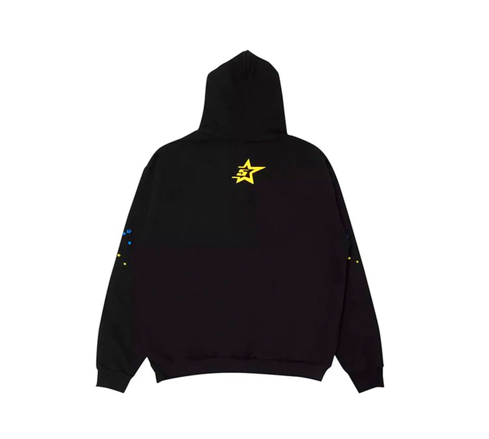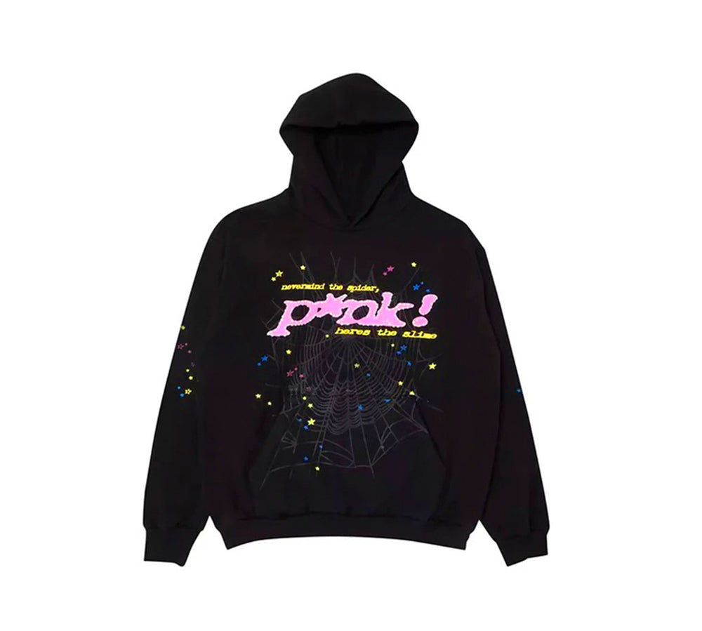Nesta versão preta com detalhes cor-de-rosa e logótipo gráfico, a Sp5der celebra dualidade e provocação visual. O contraste de cores fortes e o fit largo criam uma peça energética e irreverente, com toque pop e atitude de palco.