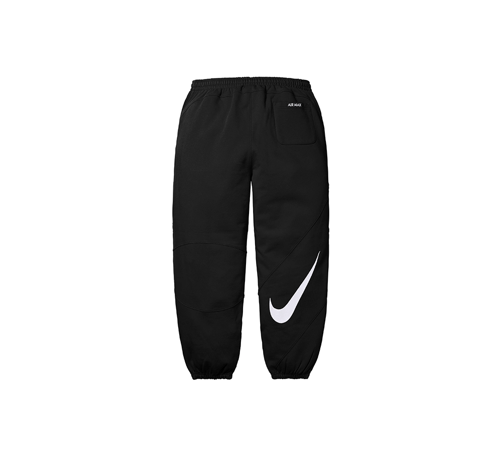 Em preto total, estas calças combinam o minimalismo da Supreme com o conforto técnico da Nike. Uma peça versátil com branding subtil que cruza performance e estilo urbano.