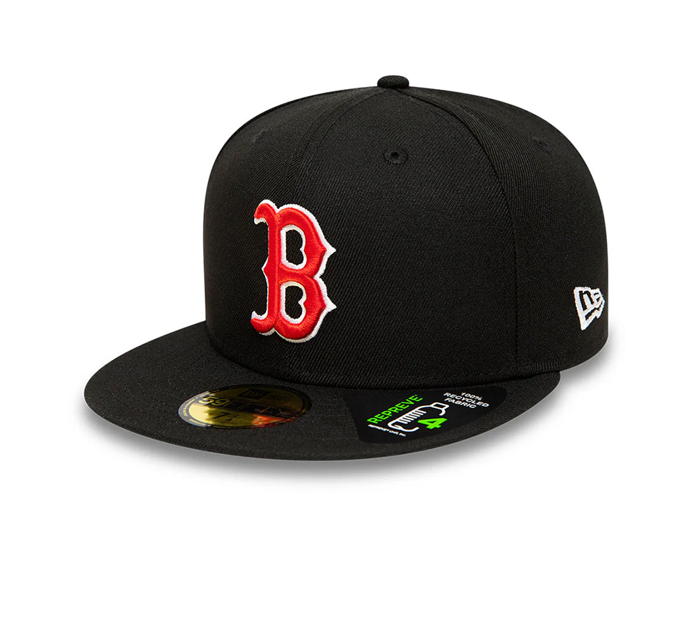 O New Era Boston Red Sox MLB Repreve 59FIFTY - Black é uma peça que une o design icónico da Major League Baseball a um compromisso contemporâneo com a sustentabilidade, apresentando uma estética urbana e consciente. Confeccionado em tecido Repreve®, uma fibra de alta performance derivada de materiais reciclados, este boné possui uma coroa estruturada na cor preta absoluta, oferecendo uma alternativa ecológica sem comprometer a durabilidade. O design é finalizado com o clássico logótipo "B" dos Red Sox bordado em relevo na parte frontal e o logótipo oficial da MLB na traseira, mantendo o ajuste fixo e estruturado do modelo 59FIFTY original enquanto promove um luxo funcional e de baixo impacto ambiental.
