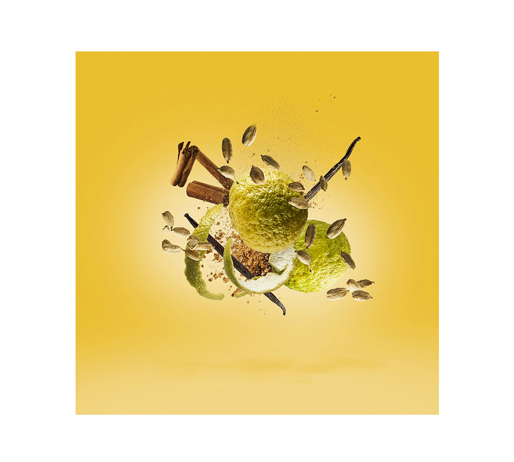 A abertura é uma explosão cítrica e fresca, seguida por um coração rico em frutas e especiarias, que confere um calor intrigante. A base, com Baunilha, Âmbar e Almíscar Branco, garante uma fixação poderosa e um rasto doce, cremoso e sensual.